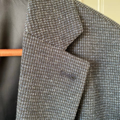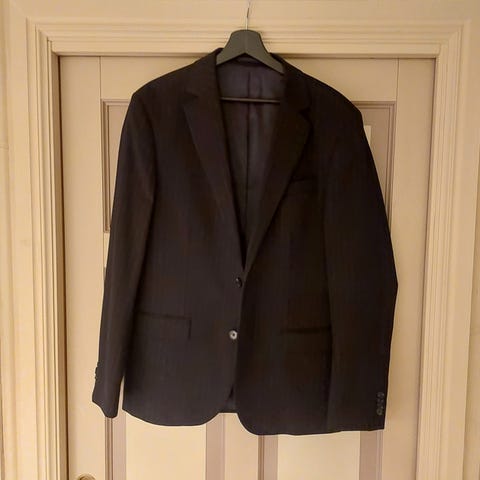 Blazer / dressjakke i grå ullblanding. To lommer framme, tre innerlommer. Størrelse 58 regular, fra Dressmann.