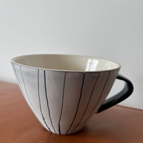 2 stk håndlagde keramikkopper, selges enkeltvis. Koppene er støpt og håndbygget, det er brukt steingodsleire og mat/drikkesikre glasurer. Perfekt for kaffe latte eller te. Prisen er per stk.