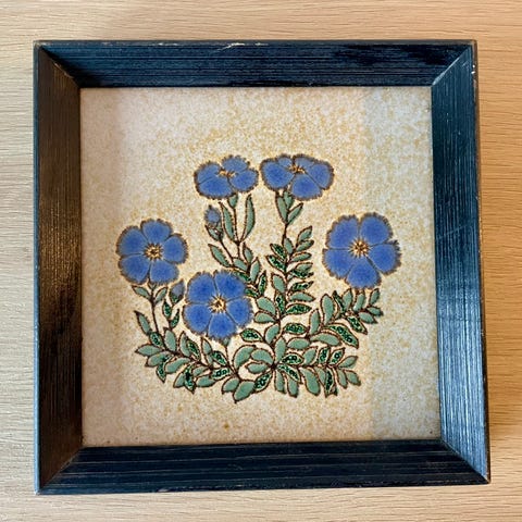 Liten og dekorativ bolle selges. Den er i hvitt steingods og har marineblå, mørkeblå glasur inni med dekor av lyse strå. Får meg til å tenke på Jærstrendene med sine strå langs kanten. Kan brukes til telys, godteri, nøkler eller bare som et dekorativt element i interiøret.