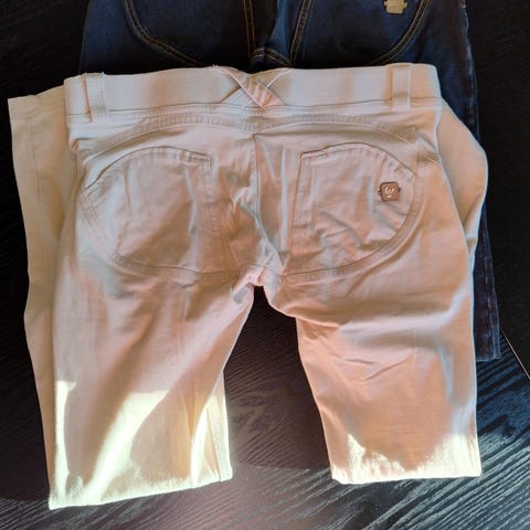 Tricotbukse og halvpolo med ett ermet. Flott sett, med en nydelig beige farge. Materialet er i polyester, men også litt elastan for elastisitet
