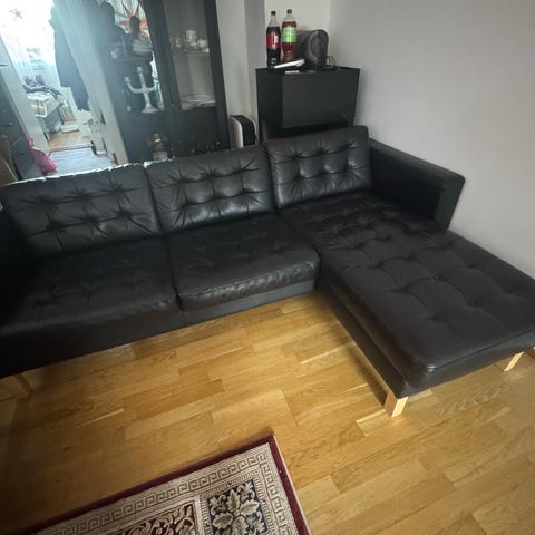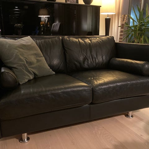 3 seter skinnsofa fra Ikea, har 2 stk. Ca 4 år gamle. Vi har 2 allergivennlige/røytefrie hunder som har vært i sofaene. Ingen slitasje, gode sofaer som er lite brukt. 5000 pr stk. må hentes. Åpen for bud .