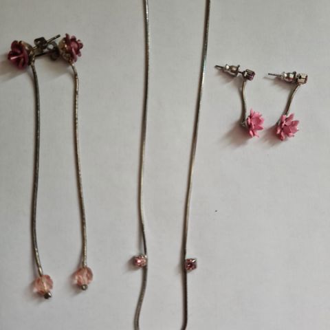 Ring og anheng - gullfarget rosett - i gullfarget materiale. Smykkesett med dekorative detaljer, designet for jente/dame.