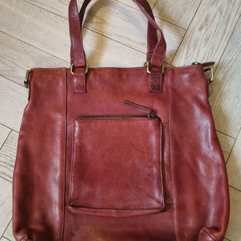 Made in Denmark. Med flere lommer. Fra merket BelSac / Bel Sac. Mål på Selve vesken: 25x18 cm.