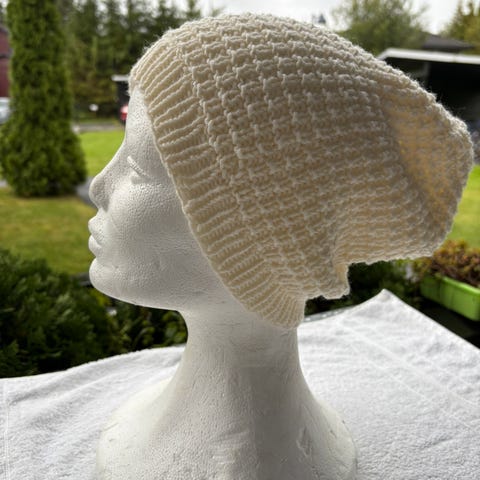 2 nye strikkede luer selges til ca garnpris.