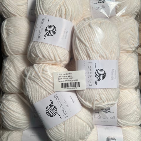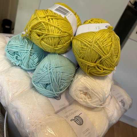 5 nøster (selges samlet), det ene er muligens tatt noe fra.