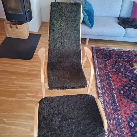 Stolene er nesten ikke brukt. Det eneste som er å utsette er skinnremmene som holder nakkeputen. De er «tørket ut» og må skiftes.