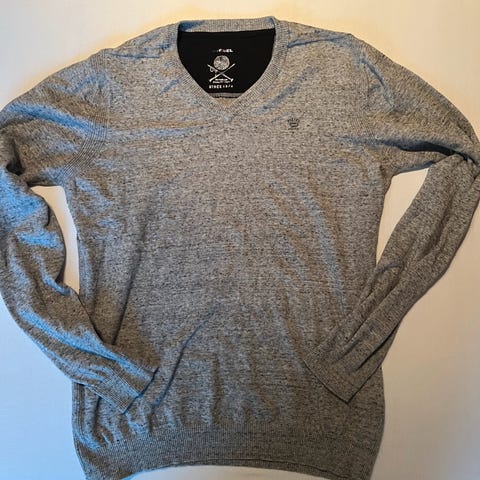 Ikke slitt nederst på ermer og bol.
