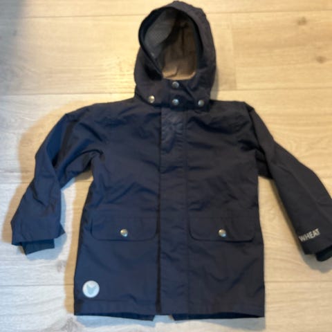 En helt super jakke! Blå med mange reflekser. Lett blank i stoffet, som gjør den pen. Lett for med mulighet for innstramming i livet. Myk og lett å bevege seg i. Noe slitasje på refleks, ellers veldig god stand. Str. 116/122. Passer vår, høst, sommer.