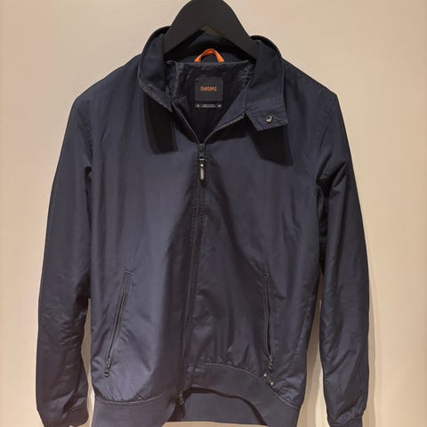 Nydelig Swims høst vår jakke. Mørk marineblå. Fine detaljer. Store klassisk front lommer. Two way zip. Justerbar back. Vind og vann avisende. Kvalitetsjakke. Størrelse Medium+. Fremstår som ny. Nypris var 2499 kr.