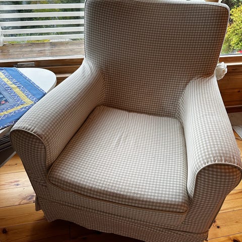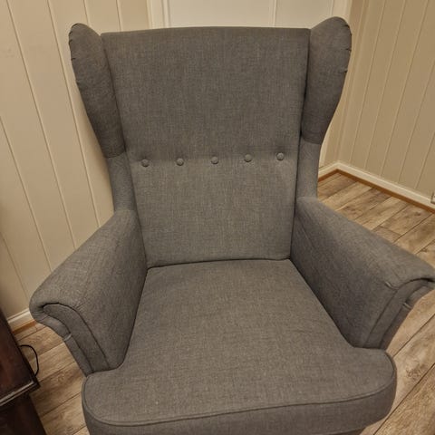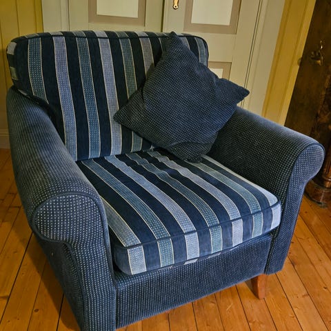 Noe falmet, men god å sitte i.