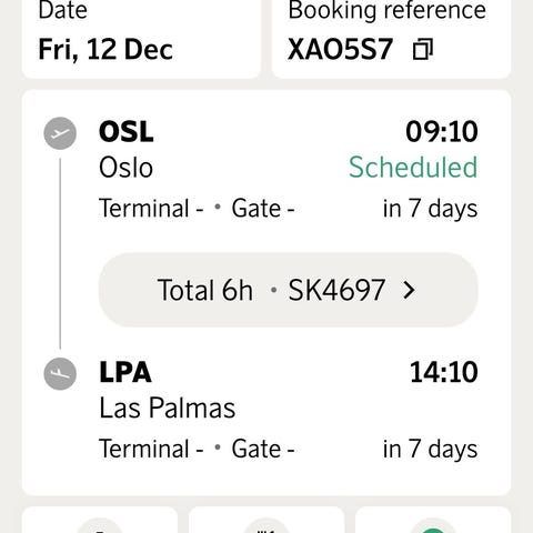To stk billetter med SAS. LPA - OSL Fredag 30. januar kl 15.00 - 21.30. 2 Underseat bag, 2 Carry on bag, og 3 Checkin bag samt setereservasjon inkludert i BEGGE billetter. Endringsgebyr på kr. 600,- pr. billett tilkommer.