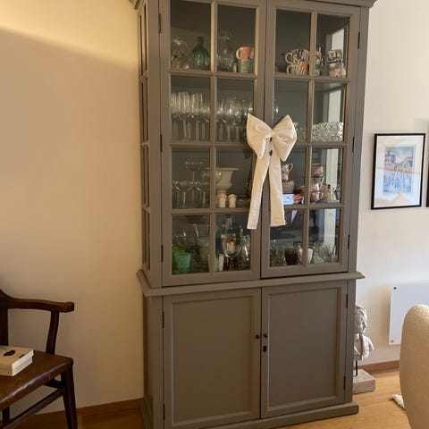 Vitrineskap med lys selges pga. flytting. Skap med lås, samt 4 skuffer under. Må hentes