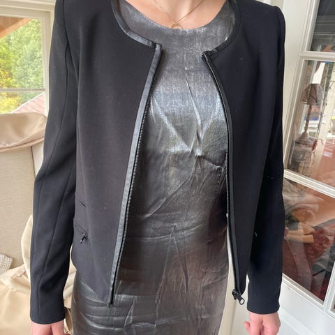 InWear jakke i størrelse 42 for kvinner, laget av bomull. Jakken har en svart farge og et rutemønster. Den har knappelukking foran og to lommer med klaff. Passer til bruk som ytterplagg i mildt vær.
