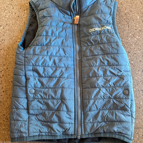 Vesten har glidelås foran, to lommer med knappe lukking (trykk-knapp)