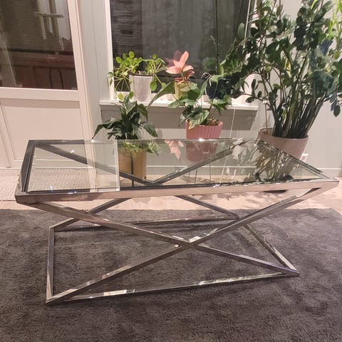ca 1x1m, glas i midten, kr 100 ved avhenting
