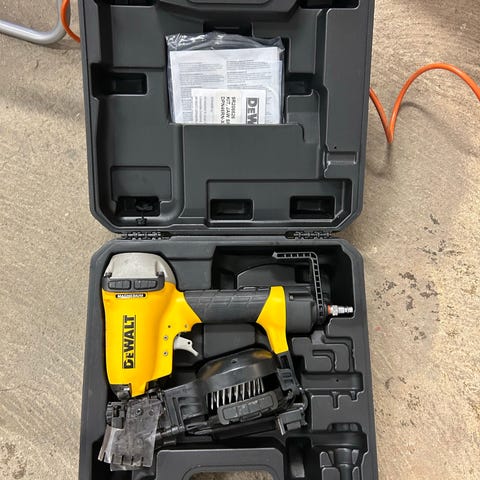 DeWalt spikerpistol med gul og svart farge. Egnet for spikring i ulike bygge- og monteringsoppgaver.