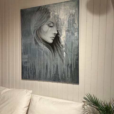 Mixed media maleri (grafisk trykk, akryl og ulike overflate medium). Malt på lerret 31*44 cm.