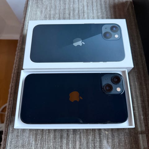 Apple iPhone 13 mobiltelefon med 256 GB lagringskapasitet. Pent ivaretatt, ingen riper på skjerm.