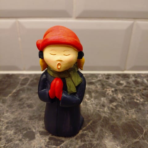 Figuren er av et barn med snøballer. Den er ca 4cm høy. Pent brukt.