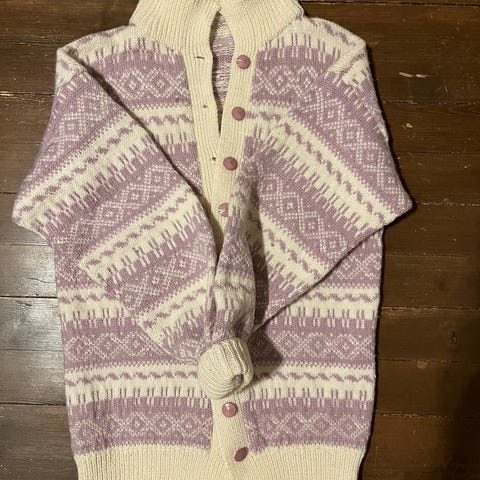 Har for mye klær og selger derfor denne ulljakken. Str medium. Ble kjøpt på marked i Latvia, er lite brukt. God og varm. Har 2 lommer foran.