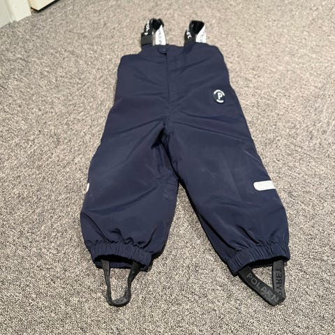 Nydelig utebukse fra Polarn o Pyret weather pro i størrelse 92. Kjøpt ny av meg og brukt hjemme til 1 barn. Har fått noen svarte flekker både foran og bak, men ellers i god stand. Har hatt flere dresser og utebukser, så denne er minimalt brukt av et aktivt barn. Fargen kommer best fram på bildet som er av lappen inni buksa, en kjempefin dus grønnfarge. Fotstrikkene er inntakte.