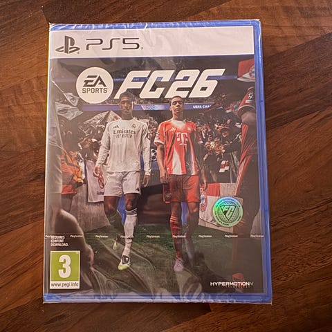 Har fått i gave FC26 til PS5. Er åpnet, men ikke brukt da vår PlayStation er heldigital.