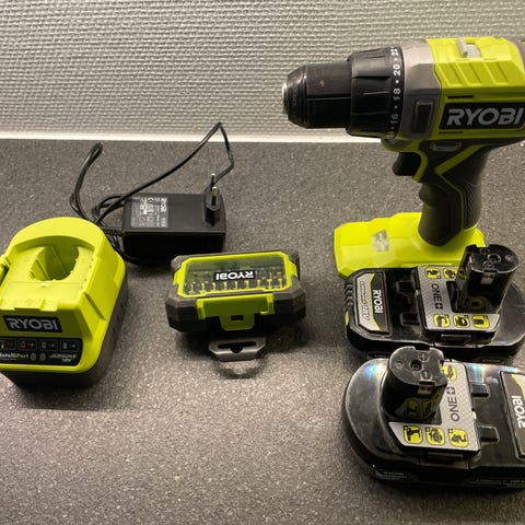 Ryobi One+ 18V Drillsett med bits, oppbevaringseske og 2x batterier