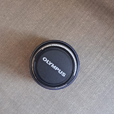 Lader og to batterier følger med, samt beskyttelseslokk for linsen.