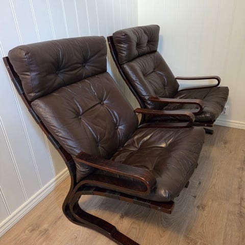 2 stk Rørstoler fra 60-70 tallet selges. De er fra Norsy Haugesund . Puteplaten på den ene er uorginal
