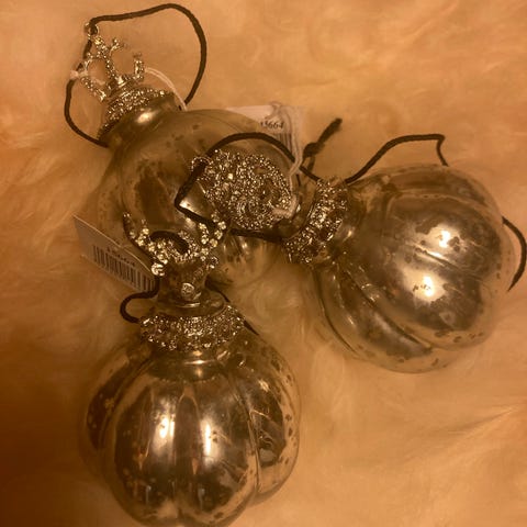 De 2 champagnefargede er litt større, pynt og perler sitter godt på, kr 120,- pr stk