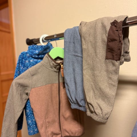 Klespakke selges da vi har for mye. Pakken inneholder fire bukser og to gensere.