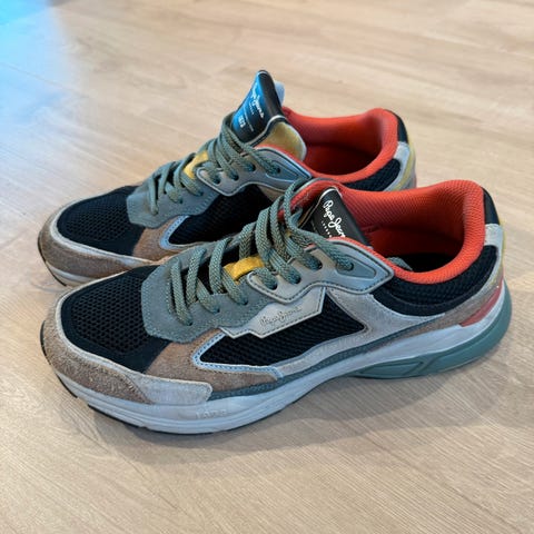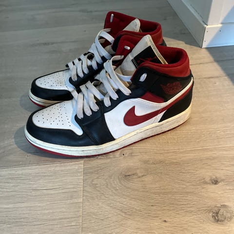 Air Jordan Sneakers joggesko i størrelse 45. Skoene har hvit og grønn farge med detaljer i grått. Materialet består av skinn og tekstil. Designet er unisex, egnet for daglig bruk.