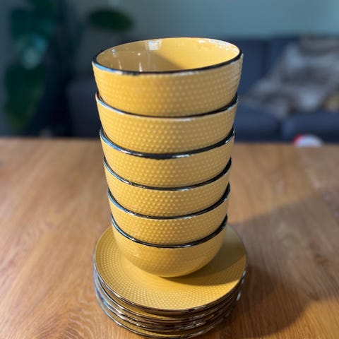 Tallerkenene er fine å kombinere med seriene Raw Black og Fumiko fra samme merke for et japandi-inspirert servise - slik jeg har gjort. (Jeg selger flere ulike tallerkener og et par skåler fra disse seriene i andre annonser).