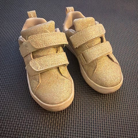 Lite brukt gull-sneakers med borrelås fra Pepper. Str 30.