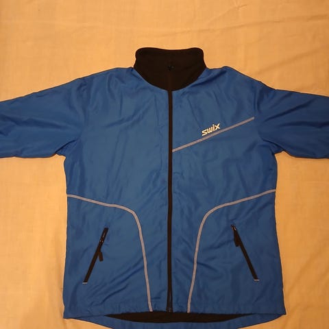 Swix skidress til kalde dager, også fin for å holde varmen før skirenn. Lett, isolerende, vindtett og vannavvisende. Glidelås hele bukselengden ned, veldig enkelt å ta av/på buksen, trenger ikke ta av skisko! Blå/mørk blå farge. Veldig pent brukt skidress.