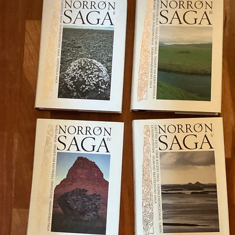 Flott fembinds verk av Norrøna Saga. Praktutgave med topping i gull, innbinding og kapittelbånd. Spesialutgivelse av De norske Boklubbene i 1992. Ubrukt og ulest.