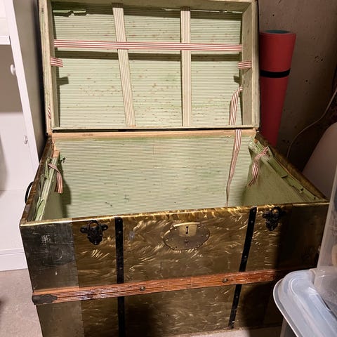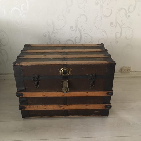 Uvisst opphav, mulig fra 1800 tallet en gang. Brukt som møbel i hjemmet.