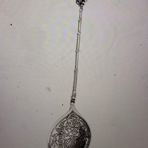 Monogram på forsiden og dato på baksiden av bestikket.