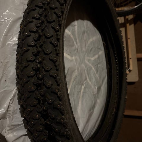 Kenda Klondike Wide sykkeldekk/piggdekk med størrelse 26 tømmer, utstyrt med pigger for bedre grep på is og snø. Dekkets bredde og piggdesign gir økt stabilitet og sikkerhet under vinterforhold. Passer til sykler med 26 tommers hjul. Helt ny og ubrukt.