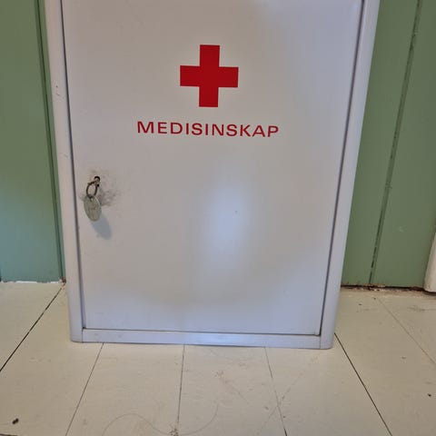 Medisinskap i stål med lås og tre hyller