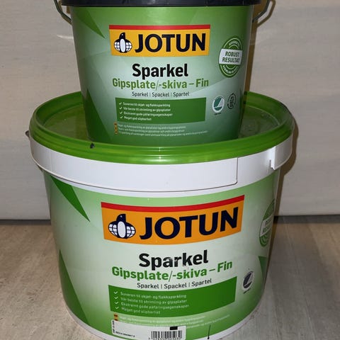 JOTUN sparkel til gipsplate/skiva fin. En 3Liter er uåpnet og en brukt se bilder. Selges begge to for 120kr. Må hentes.
