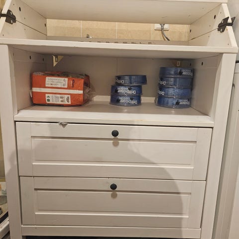 Stellebord med badekar. Det er tegn på vannskader. Se bilder.