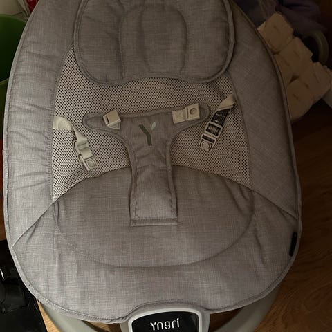 Kjøpt ny i Oktober 2025, pent brukt og fungerer akkurat som den skal. Elektrisk vippestol som har blandt annet funksjon som gynging, musikk og avtakbart nett. Medfølger kontroll til den.