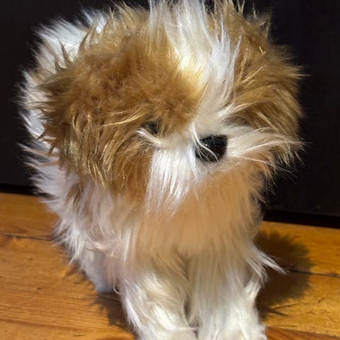 Veldig pen og detaljert valp bamse fra Hansa og håndlaget. I veldig god stand. 17 cm.