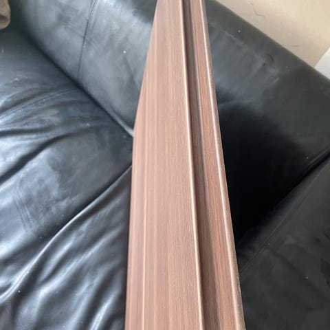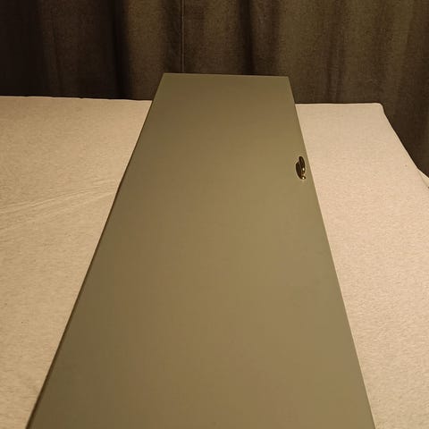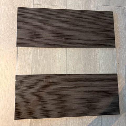 Pent brukt skapdør med Ikea Eneryda messingfarget håndtak.