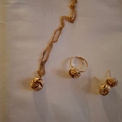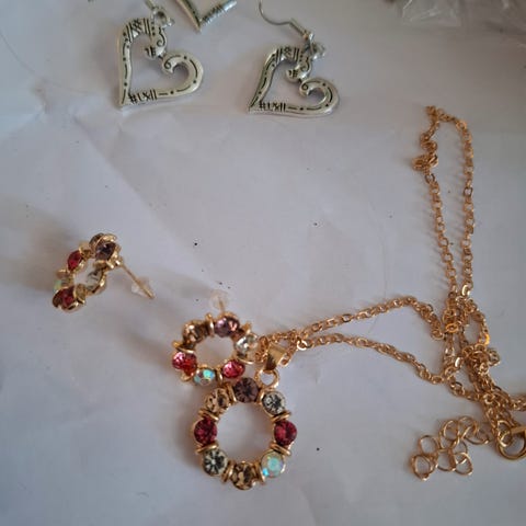 Forskjellige smykkesett med strass. Prisen er pr stk