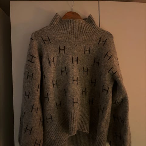 Pernille Sweater fra HÉST. Myk og luksuriøs strikk fra norske HÉST i en mørk brun tone. Pernille Sweater har en avslappet silhuett med bred V-hals, lange ermer og en subtil H-brodert detalj nederst. Strikken er laget i en fluffy, lett melert kvalitet som gir et eksklusivt uttrykk samtidig som den holder deg varm og komfortabel.