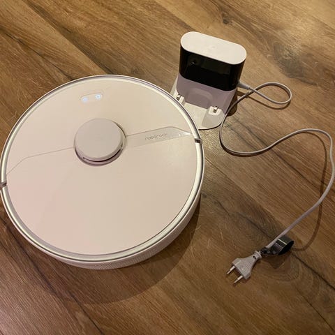Roborock S6 robotstøvsuger i svart farge. Leveres med ladestasjon, 2 nye filter, 3 nye børster(?) og 2 brukte moppekluter. Egnet for automatisert rengjøring av gulv i hjemmet. Plastunderlaget som maskinen skal stå på er litt gulnet men har ingenting å si for bruken, ellers hel og fin.