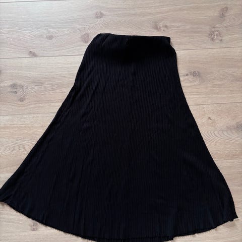 Pent maxiskjørt i 100 % viskose selges da det ikke blir brukt. Svart farge. strikk i linningen. Selges for 100 kr.