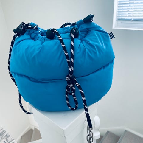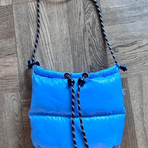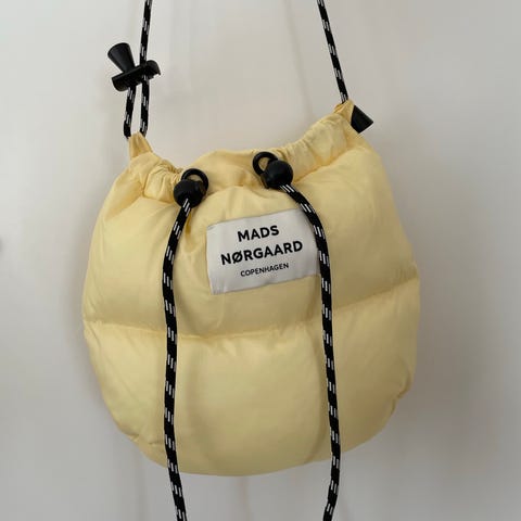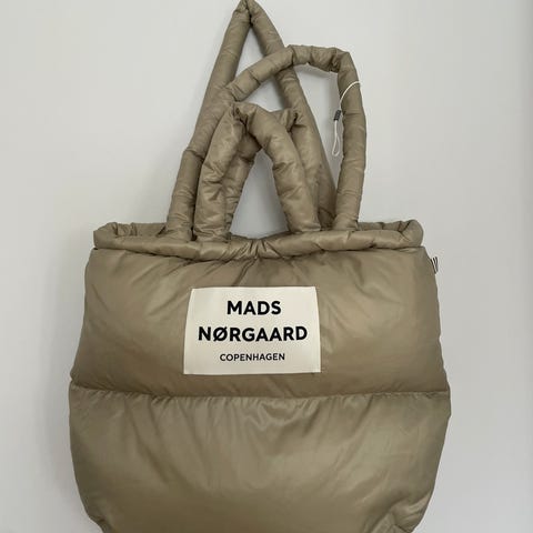 Tøff Mads Nørgaard tote bag i resirkulert kraftig bomull i fargen Navy/Red selges for kr. 300,-. Lite og pent brukt. Ca. 38x44 cm.